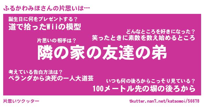| 伝説のあだ名 | 『伝説のスナイパーふるかわみほ』 |