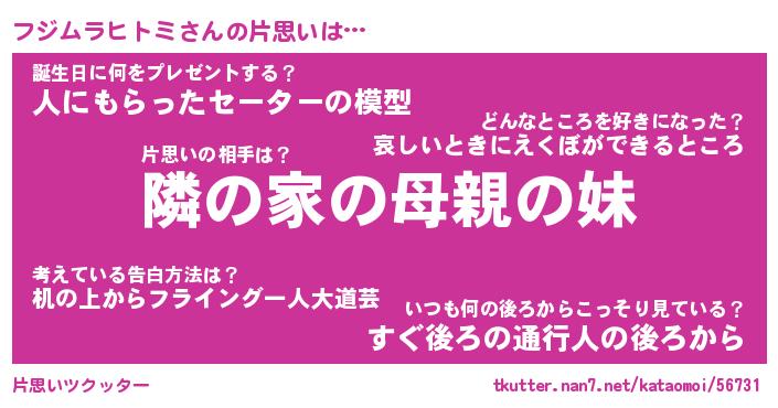 | 胡散臭い通販商品みたいなあだ名 | 『必ず成功するブレスレット…その名も「フジムラヒトミ」』 |