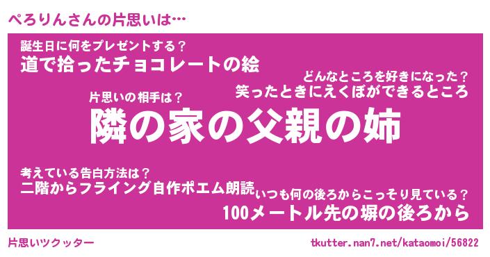 | 意味不明あだ名 | 『ペロリンぺろりん』『永久保存ぺろりん』 |