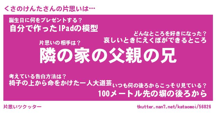 | 男性向けラノベタイトル風あだ名 | 『くさのけんたの憂鬱』 |