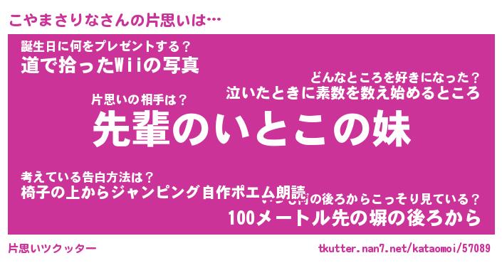 | ヘコむあだ名 | 『こやにゅー』『つくし』 |