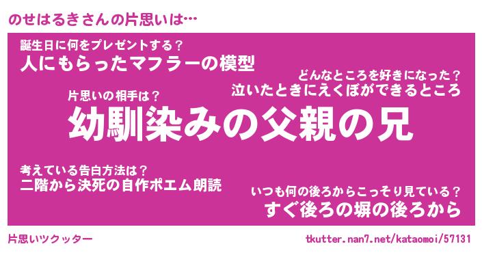 | ヘコむあだ名 | 『のせにゅー』『つくし』 |