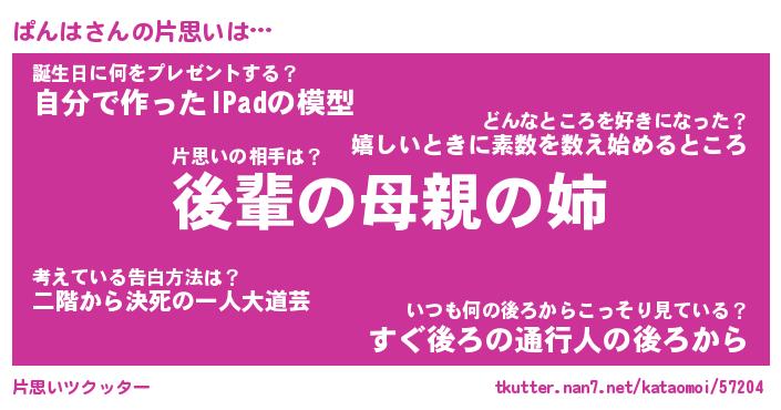 | ヘコむあだ名 | 『ぱんにー』『つくし』『ぱんっちょ』 |