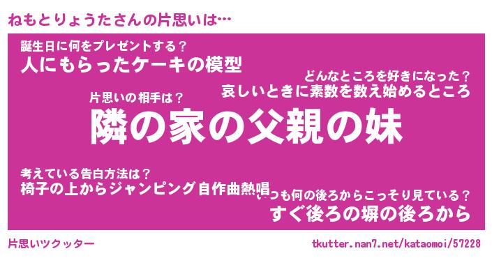 | 胡散臭い通販商品みたいなあだ名 | 『モテモテ間違いなし水晶球…その名も「ねもとりょうた」』 |