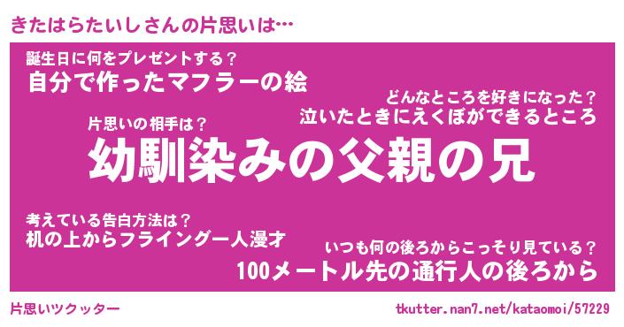 | 男性向けラノベタイトル風あだ名 | 『きたはらたいしの憂鬱』 |