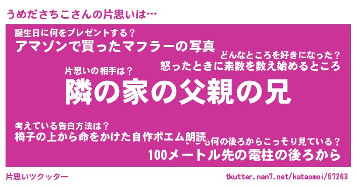 | ヒーロー風カッコイイあだ名 | 『スーパーウメダサチコ』『幻影騎士ウメ』 |