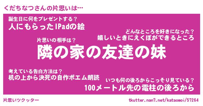 | 伝説のあだ名 | 『伝説のスナイパーくだちなつ』 |