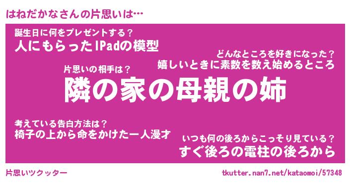 | 胡散臭い通販商品みたいなあだ名 | 『モテモテ間違いなしブレスレット…その名も「はねだかな」』 |