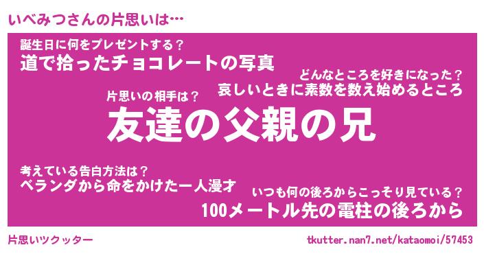 | 胡散臭い通販商品みたいなあだ名 | 『億万長者になれる水晶球…その名も「いべみつ」』 |