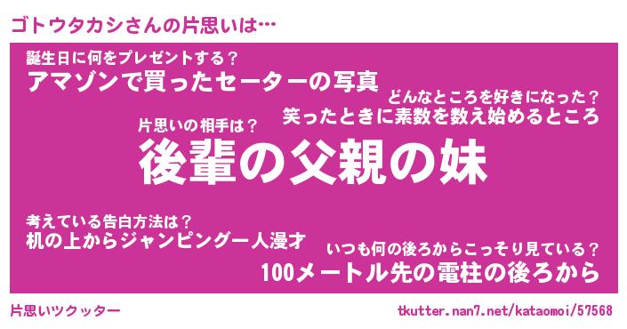 | ヘコむあだ名 | 『ゴトにゅー』『なまこ酢』 |
