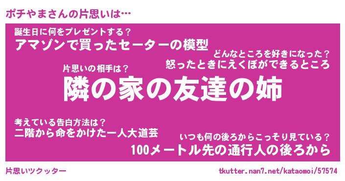 | 男性向けラノベタイトル風あだ名 | 『ポチやまの憂鬱』 |