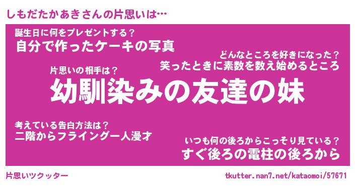 | 胡散臭い通販商品みたいなあだ名 | 『必ず成功する霊験あらたかなお札…その名も「しもだたかあき」』 |