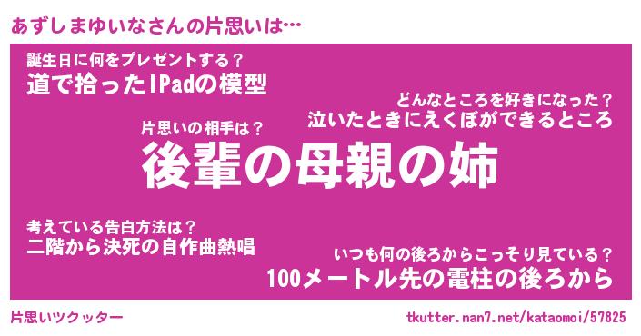 | 胡散臭い通販商品みたいなあだ名 | 『億万長者になれるブレスレット…その名も「あずしまゆいな」』 |