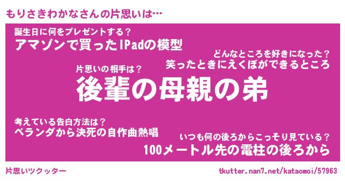 | 胡散臭い通販商品みたいなあだ名 | 『億万長者になれるブレスレット…その名も「もりさきわかな」』 |