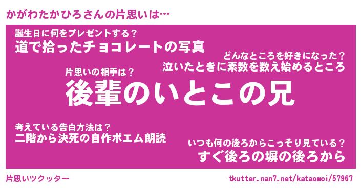 | 伝説のあだ名 | 『封印されしスナイパーかがわたかひろ』 |