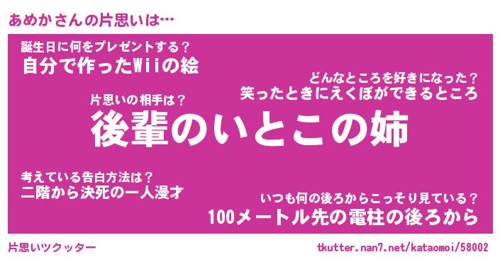 | ポケモン風あだ名 | 『アメチュウ』『アメカダネ』 |
