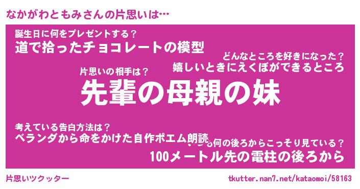| 恥ずかしいあだ名 | 『プリティーなかがわともみ』『なかちん』 |