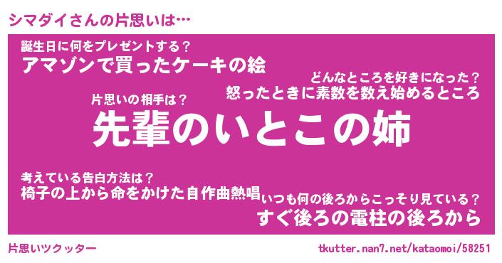 | 男性向けラノベタイトル風あだ名 | 『シマダイの憂鬱』 |