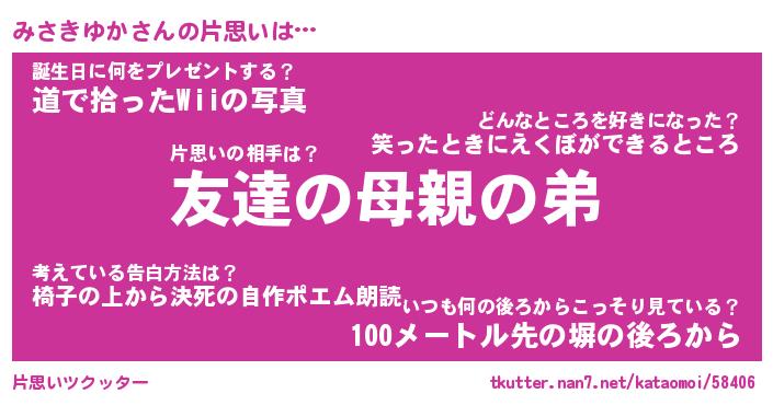 | 胡散臭い通販商品みたいなあだ名 | 『億万長者になれるブレスレット…その名も「みさきゆか」』 |