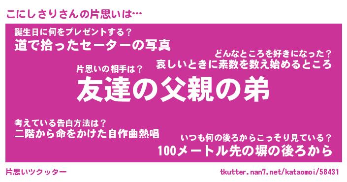 | ヘコむあだ名 | 『こににゅー』『豆乳』『こに太郎』 |