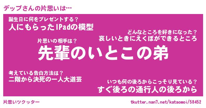 | 男性向けラノベタイトル風あだ名 | 『デップの憂鬱』 |