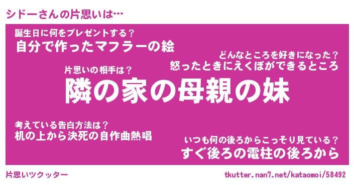 | ヘコむあだ名 | 『シドにー』『なまこ酢』『シド太郎』 |