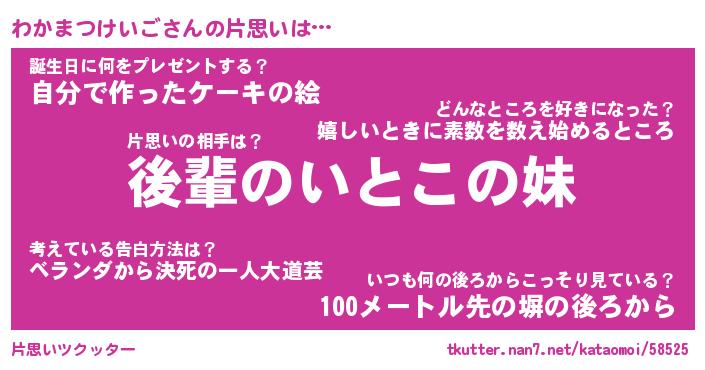 | 胡散臭い通販商品みたいなあだ名 | 『モテモテ間違いなし霊験あらたかなお札…その名も「わかまつけいご」』 |