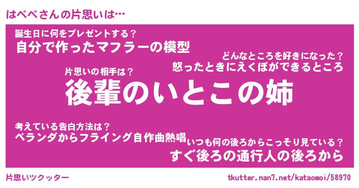 | ヘコむあだ名 | 『はぺにゅー』『つくし』 |