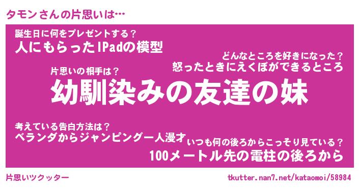 | 男性向けラノベタイトル風あだ名 | 『タモンの憂鬱』 |