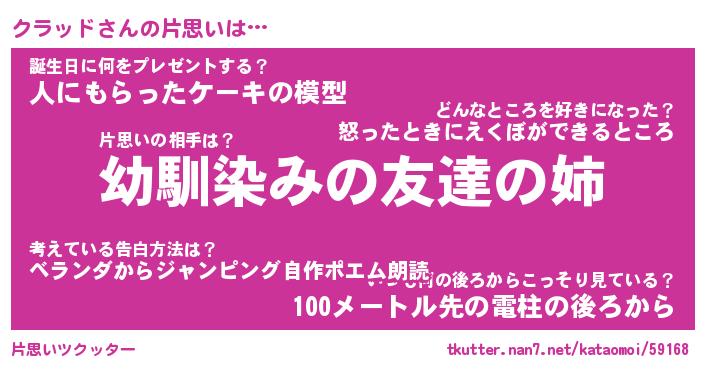 | 女子向けラノベタイトル風あだ名 | 『(仮)クラッドのやんごとなき事情』 |