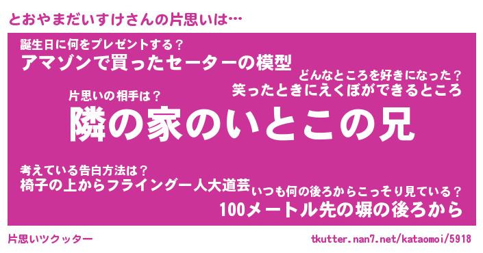 | 胡散臭い通販商品みたいなあだ名 | 『モテモテ間違いなし水晶球…その名も「とおやまだいすけ」』 |
