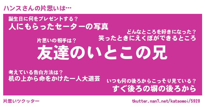 | ヘコむあだ名 | 『ハンもー』『つくし』『ハンっ子』 |