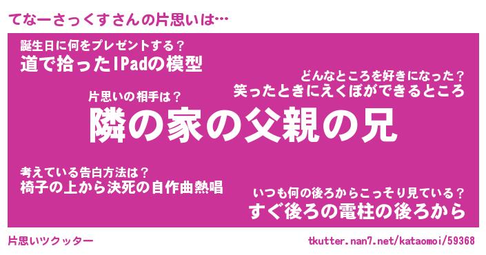 | 胡散臭い通販商品みたいなあだ名 | 『必ず成功する水晶球…その名も「てなーさっくす」』 |