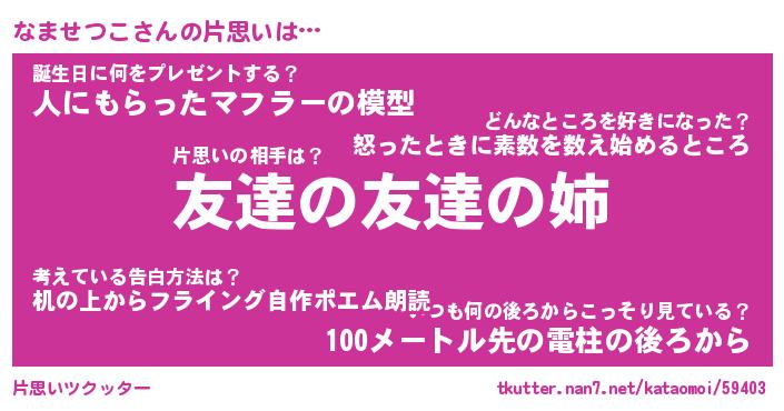 | 伝説のあだ名 | 『封印されしスナイパーなませつこ』 |