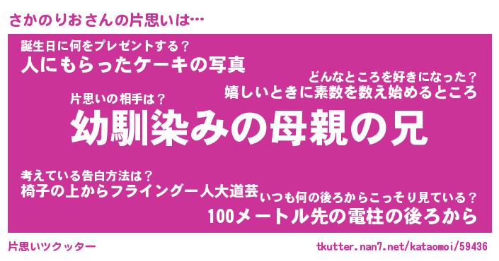 | 男性向けラノベタイトル風あだ名 | 『さかのりおの憂鬱』 |