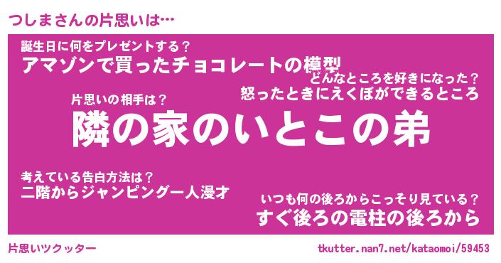| ポケモン風あだ名 | 『ツシチュウ』『ツシマダネ』 |