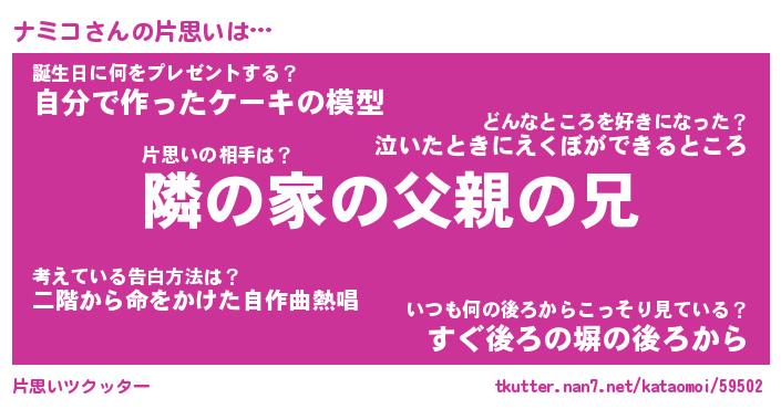 | 意味不明あだ名 | 『ペロリンナミコ』『ナミコフォーエバー』 |