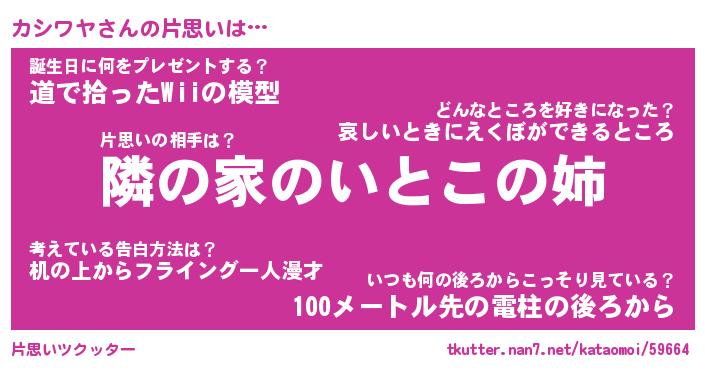 | 男性向けラノベタイトル風あだ名 | 『カシワヤの憂鬱』 |