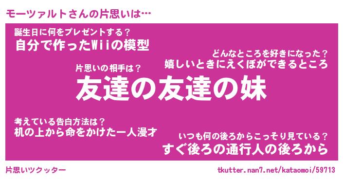 | ヒーロー風カッコイイあだ名 | 『スーパーモーツァルト』『天弓騎士モー』 |