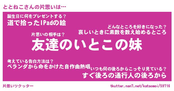 | 意味不明あだ名 | 『ペロリンととねこ』『永久保存ととねこ』 |