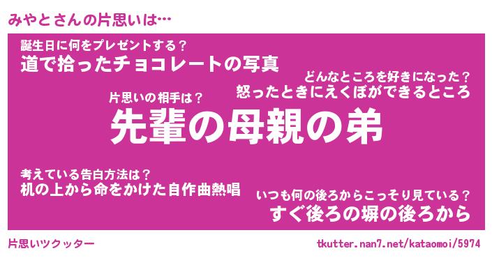 | 男性向けラノベタイトル風あだ名 | 『みやとの憂鬱』 |