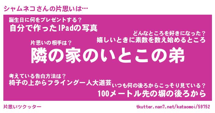 | ヒーロー風カッコイイあだ名 | 『スーパーシャムネコ』『天弓騎士シャ』 |