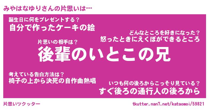 | ヘコむあだ名 | 『みやにゅー』『つくし』 |