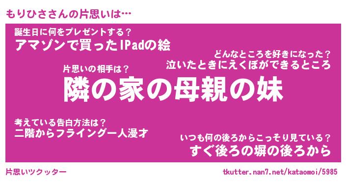 | 男性向けラノベタイトル風あだ名 | 『もりひさの憂鬱』 |