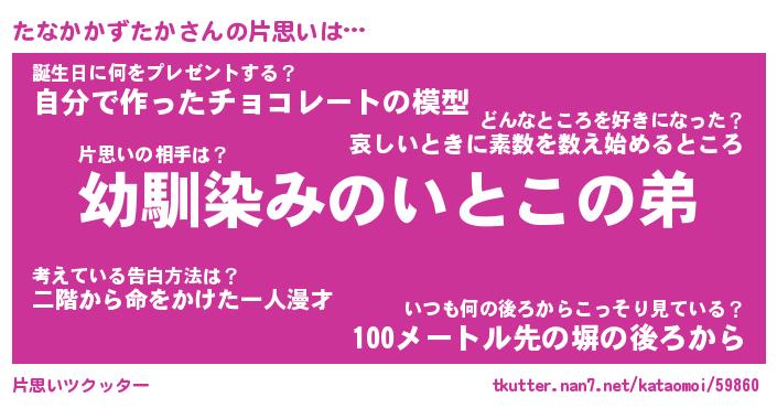 | 女子向けラノベタイトル風あだ名 | 『(仮)たなかかずたかのやんごとなき事情』 |