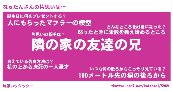 | ヘコむあだ名 | 『なぁっふぃ~』『つくし』 |