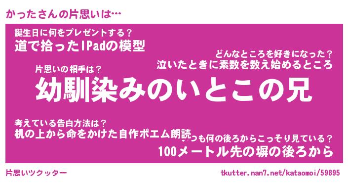 | 男性向けラノベタイトル風あだ名 | 『かったの憂鬱』 |