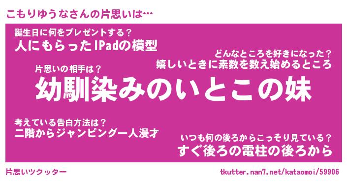 | ヒーロー風カッコイイあだ名 | 『スーパーコモリユウナ』『暗黒騎士コモ』 |