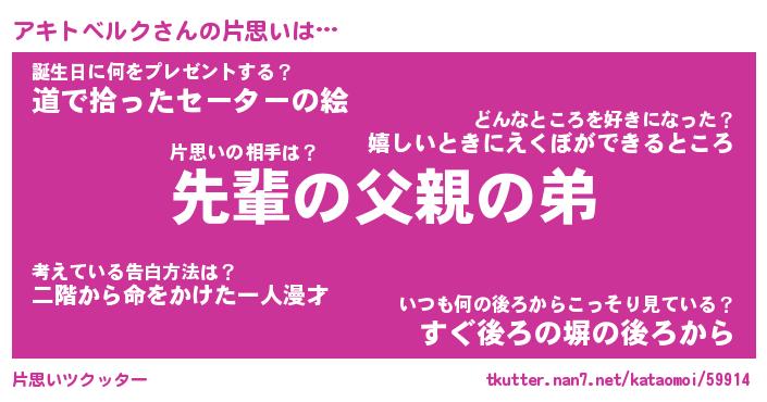 | 男性向けラノベタイトル風あだ名 | 『アキトベルクの憂鬱』 |
