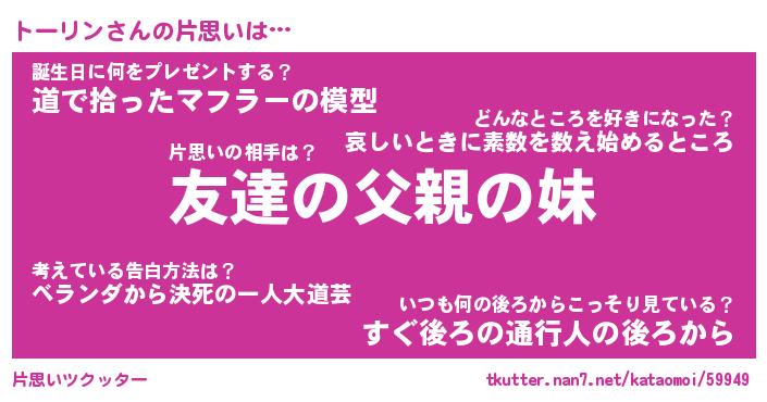 | 意味不明あだ名 | 『ペロリントーリン』『永久保存トーリン』 |